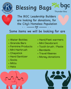💙 BGC Leadership Builders Need Your Help 💙 Our BGC Leadership Builders are coming together to fill Blessing Bags for individuals of our community who